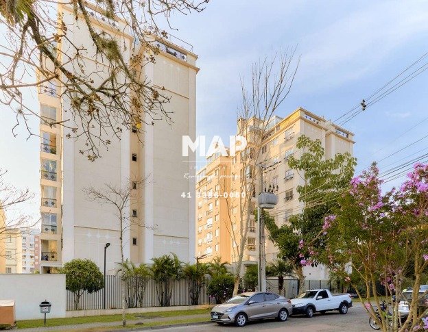 Apartamento semimobiliado, face oeste, localizado em uma rua tranquila (sem saída) com acesso direto ao Parque Bacacheri. Próximo a farmácias, supermercados, postos de gasolina. Ar condicionado em todos os ambientes. Sacada com churrasqueira. Condomínio com portaria 24h, cancha, salão de festas e playground